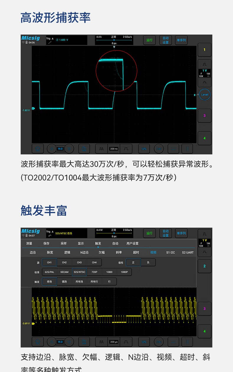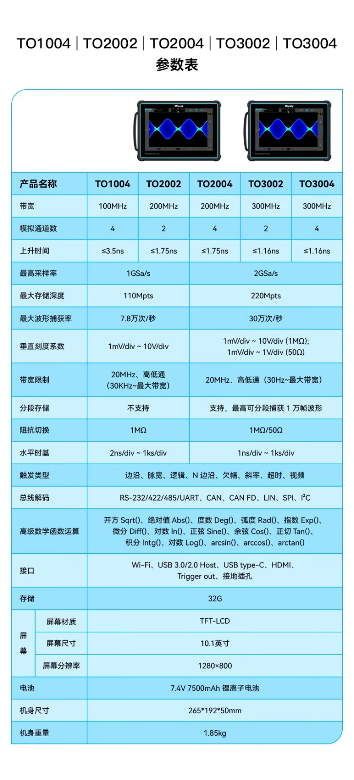 1 品牌:麦科信(Micsig),型号TO2004,平板数字示波器,200MHz带宽,四通道,最高采样率1GSa/s