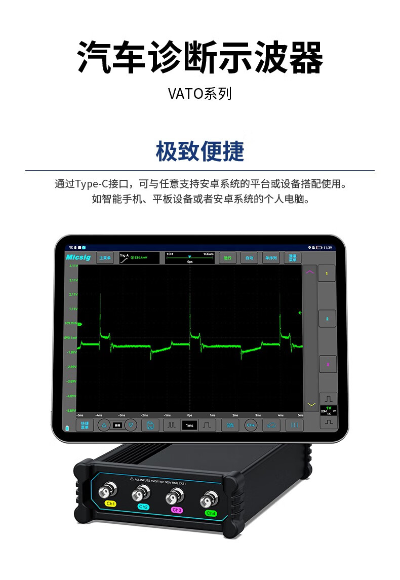 Micsig麦科信 汽修便携USB虚拟示波器 200M带宽 四通道 1GSa/s采样率 可接所有安卓设备