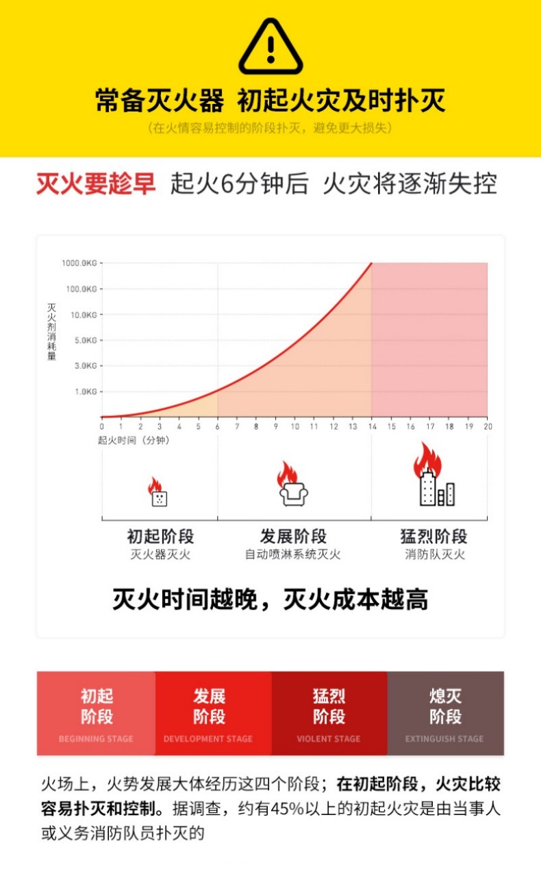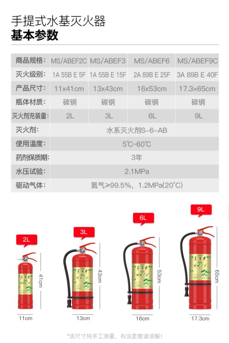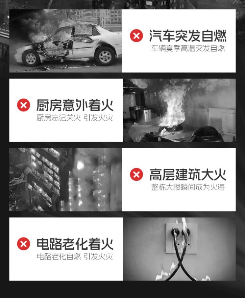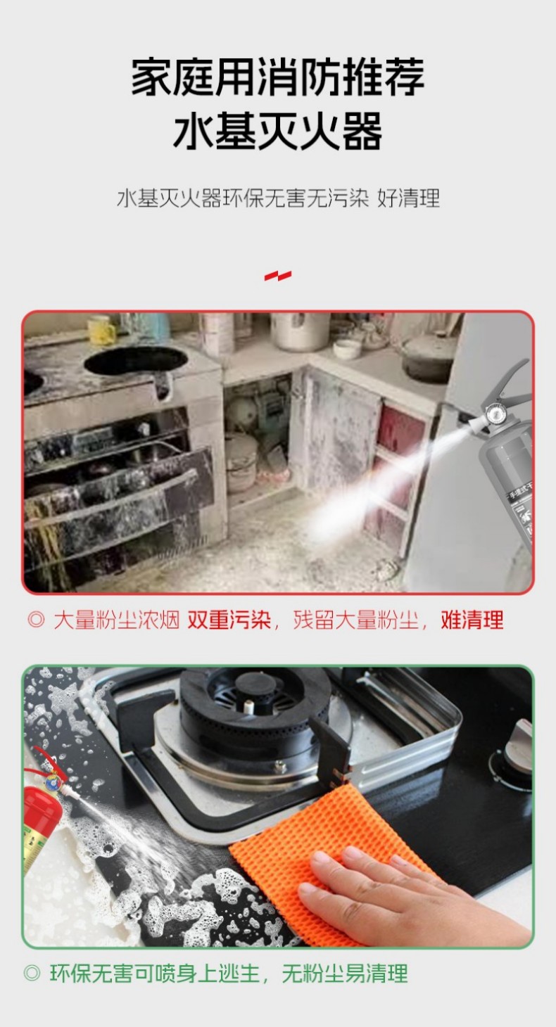 电绝缘性高,可灭36KV以下带电火灾,适用A类固体火、B类液体火、E类电器火、F类厨房油脂火等多种初期火情