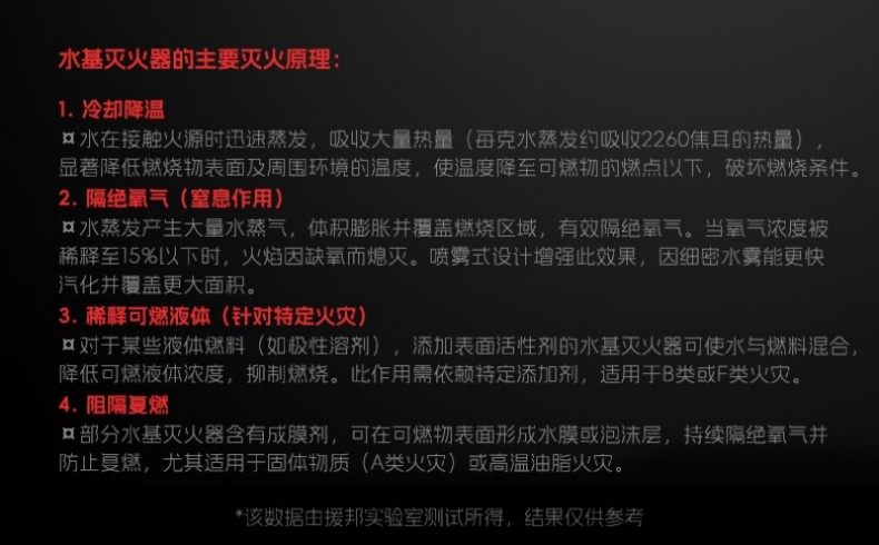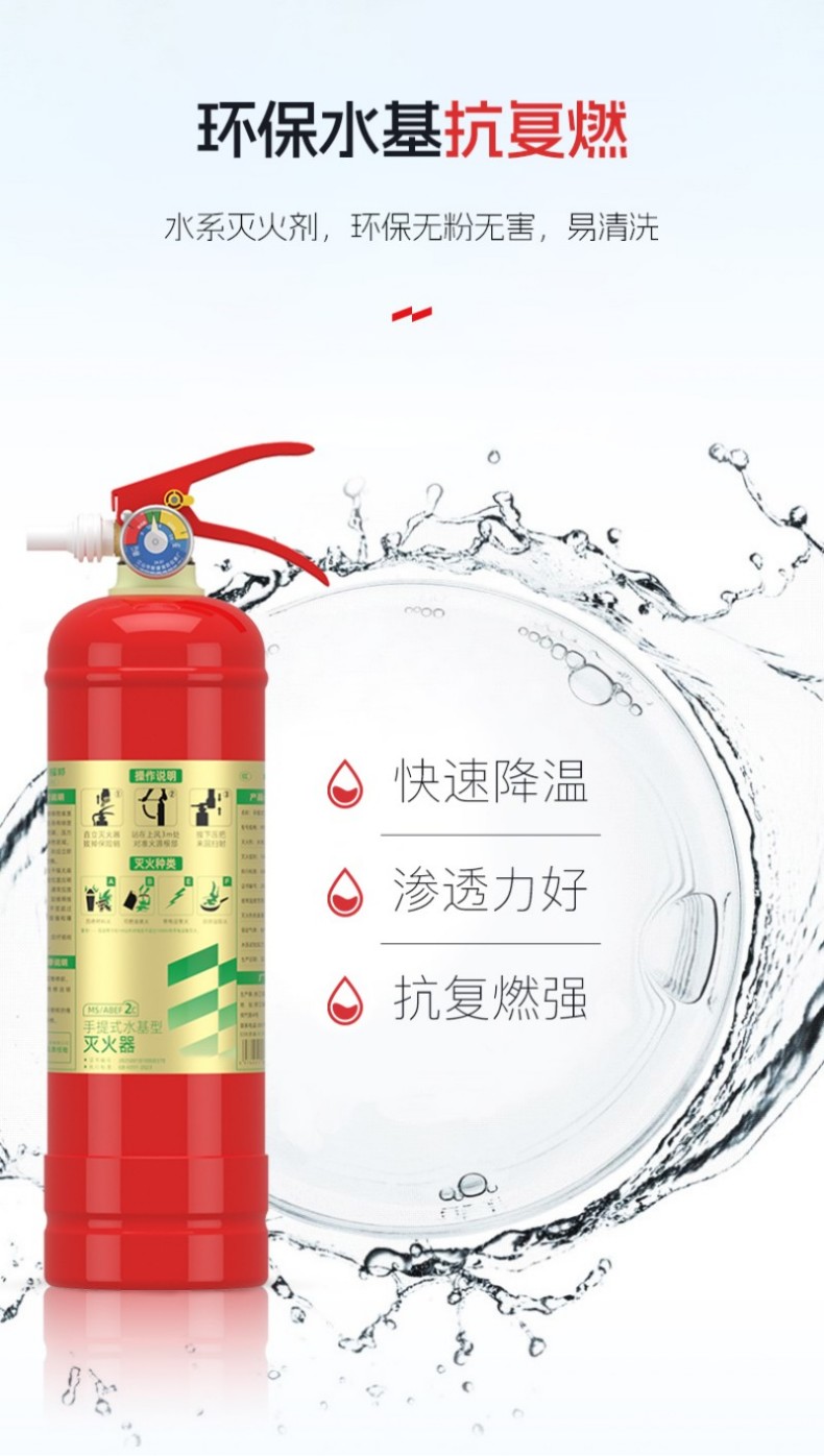 环保水基灭火剂,无粉尘无污染易清理,紧急时可喷于身体非头部眼部区域作逃生防护