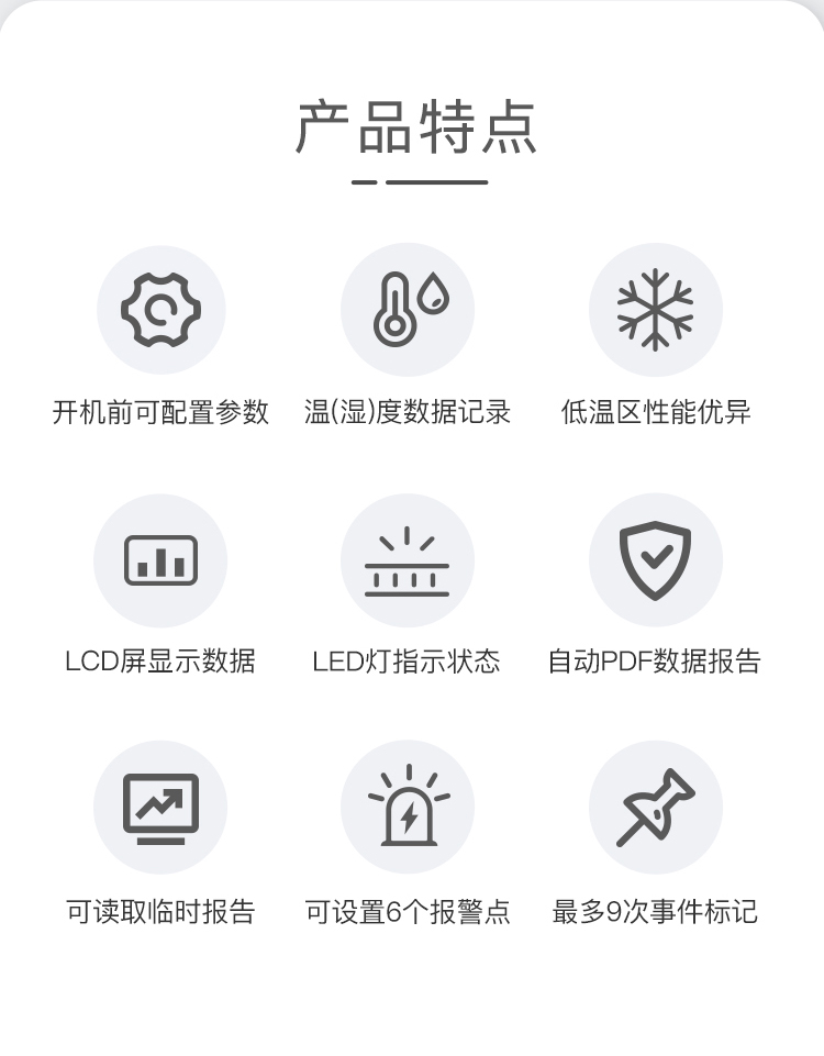开机前可配置参数,低温区性能优异,支持最多9次事件标记