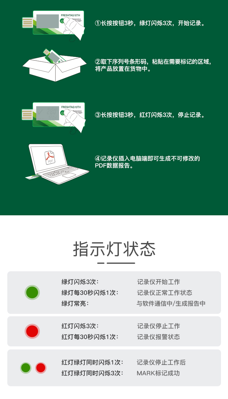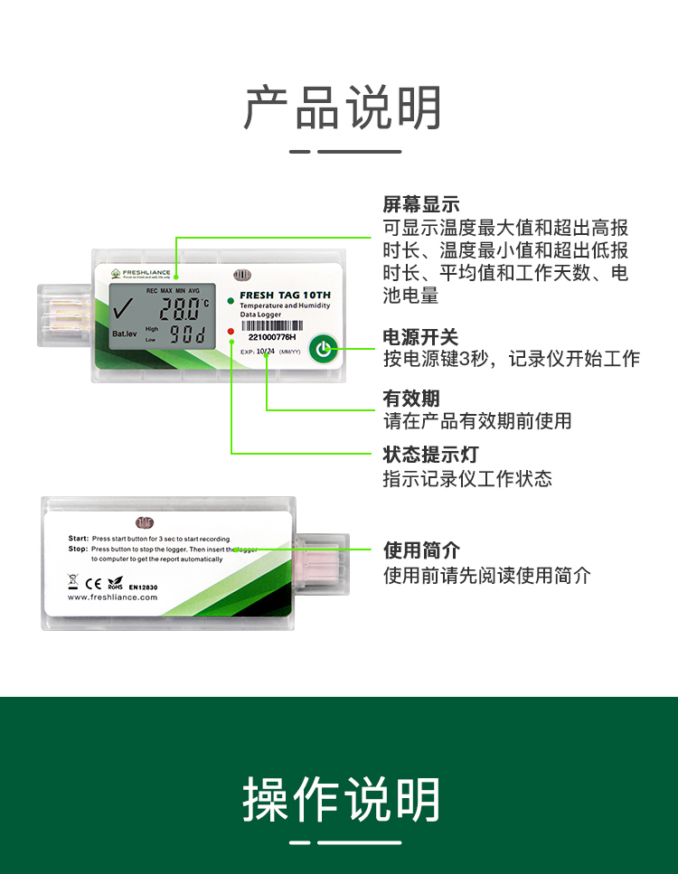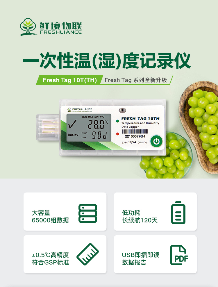 一次性温湿度记录仪,型号Fresh Tag 10TH,适用于多场景环境监测