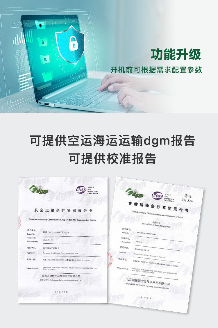 提供校准报告及空运/海运DGM运输条件鉴别报告,符合行业合规要求