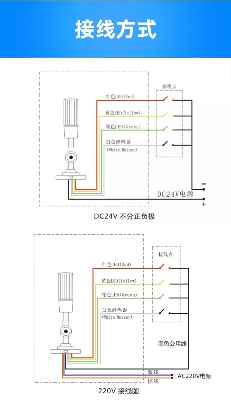 支持红、黄、绿三色一体常亮显示,满足多种工业状态指示需求