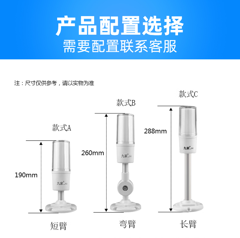 产品结构紧凑,支持短臂、弯臂、长臂三种款式选择,灵活适配不同安装场景