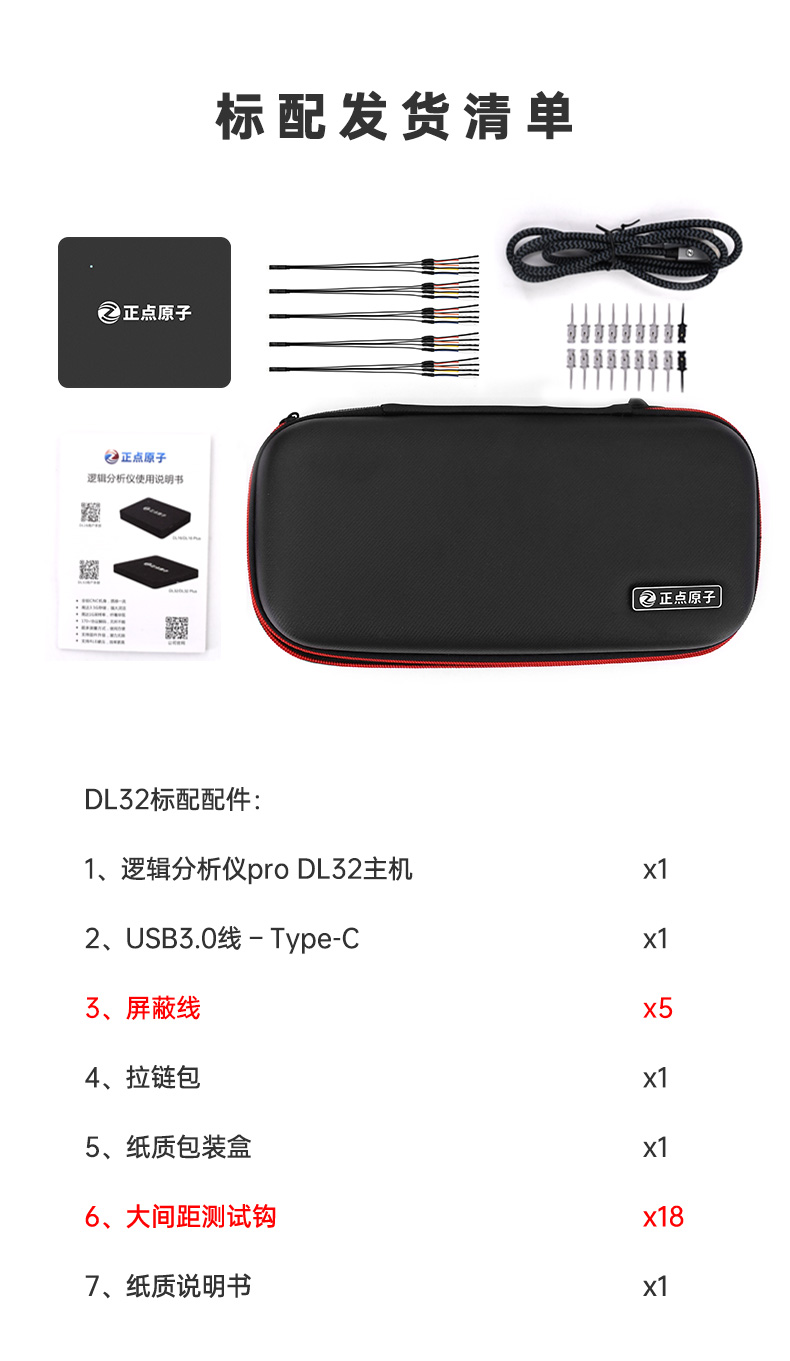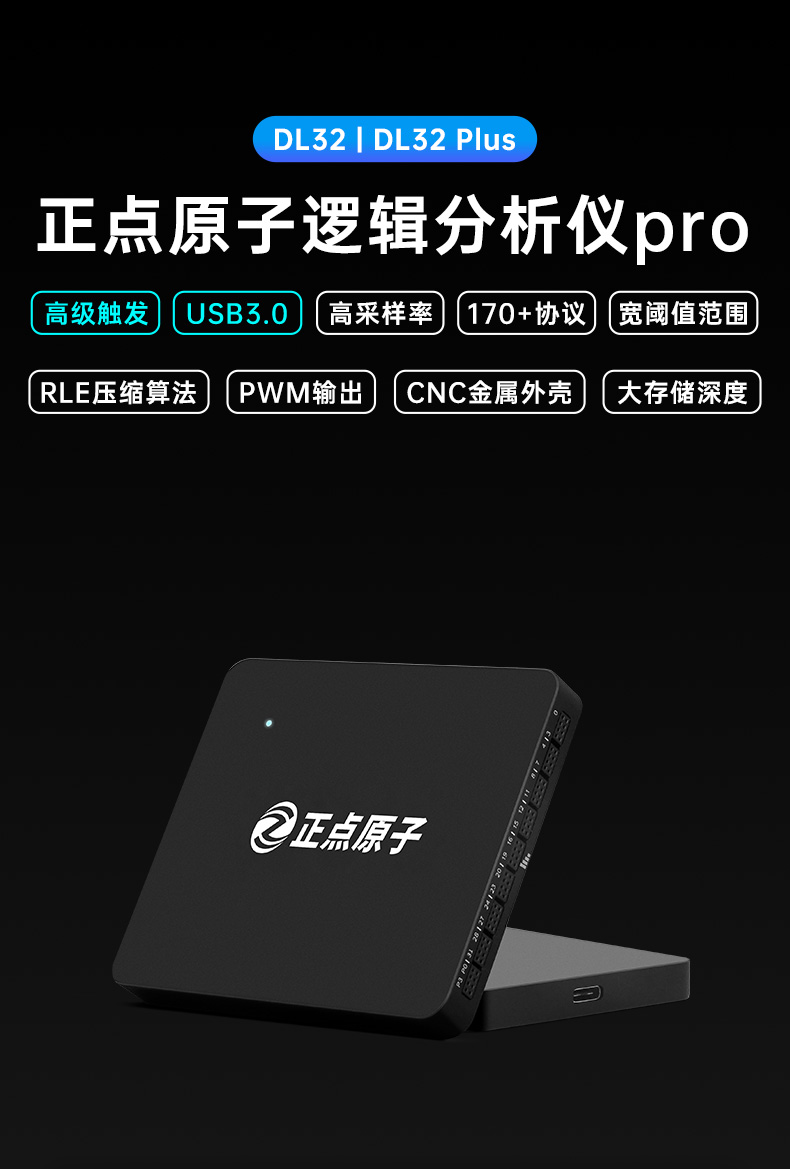 搭载专业逻辑分析仪软件ATK-Logic,支持多平台(Windows/macOS/Linux),界面友好,功能全面,包括波形缩放、区域放大、参数测量、标签测量等实用工具