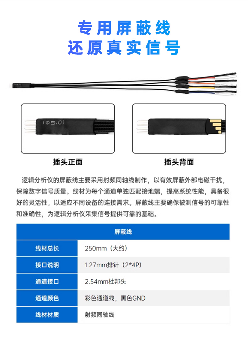 专用屏蔽线采用射频同轴线材,每个通道独立接地,有效抑制外部电磁干扰,保证信号采集的准确性与可靠性