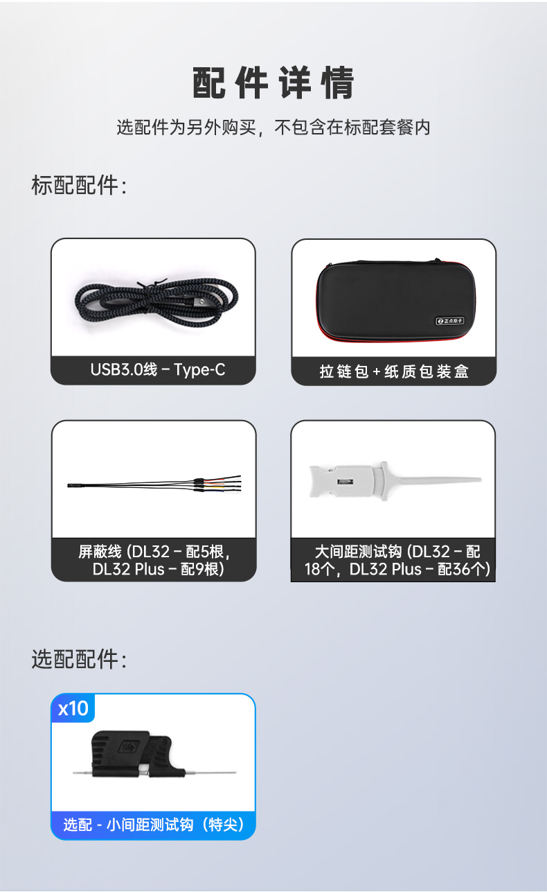 ALIENTEK(正点原子),逻辑分析仪DL32 Plus(标配)+ 小间距测试钩(1盒10个)