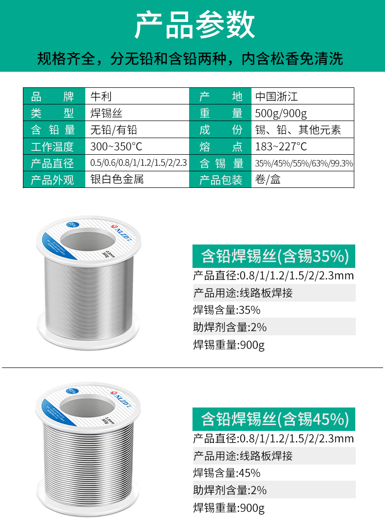 助焊剂类型为松香芯,助焊剂含量约为2%,可有效去除金属表面氧化层,提升润湿性与焊接质量。