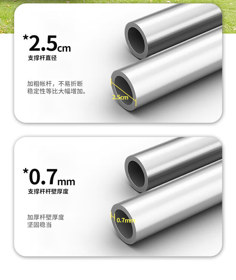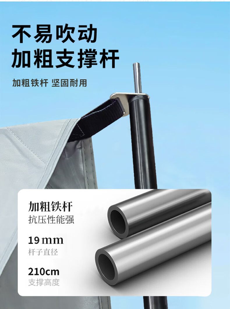 3 支撑杆直径达19mm,加粗设计增强抗压性和稳定性,不易变形或折断,确保在强风中依然稳固