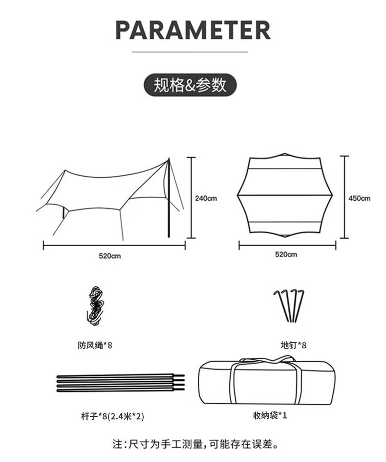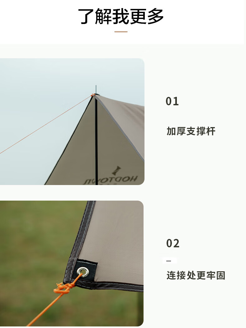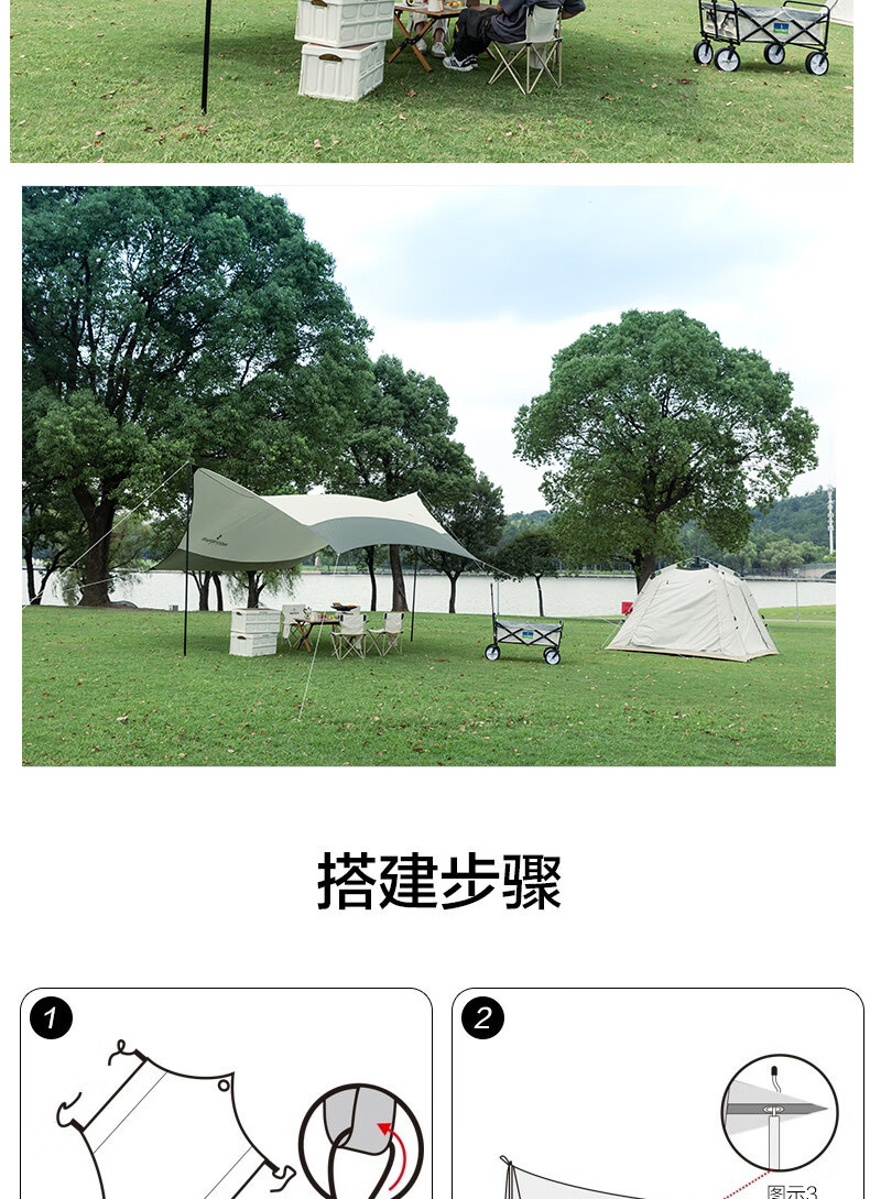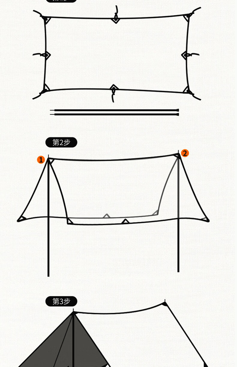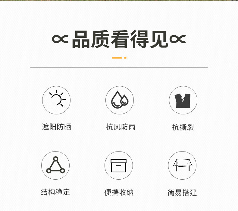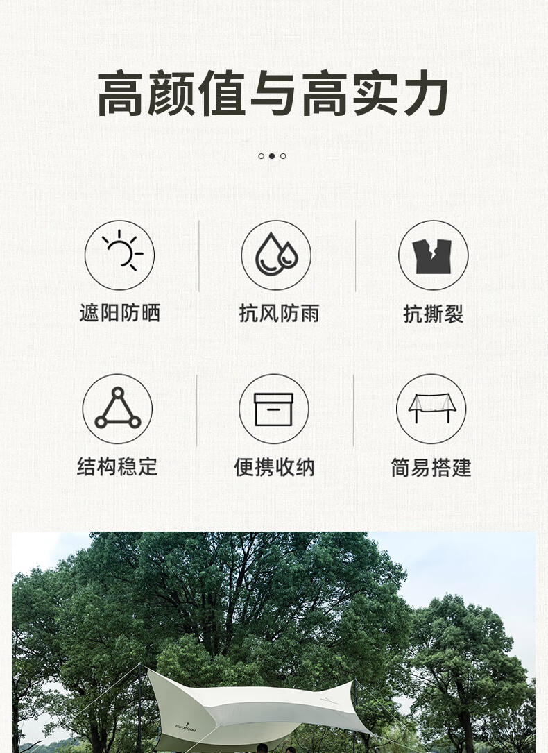 1 适用于露营、野餐、郊游、徒步旅行等户外活动,为用户提供遮阳避雨的空间