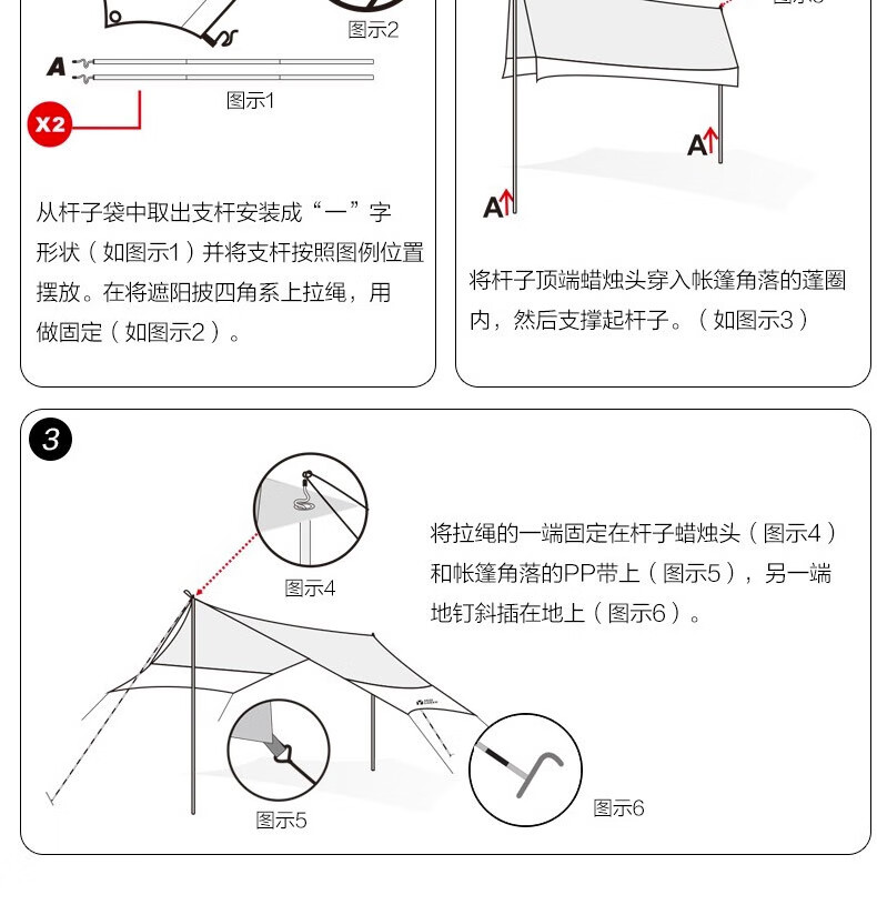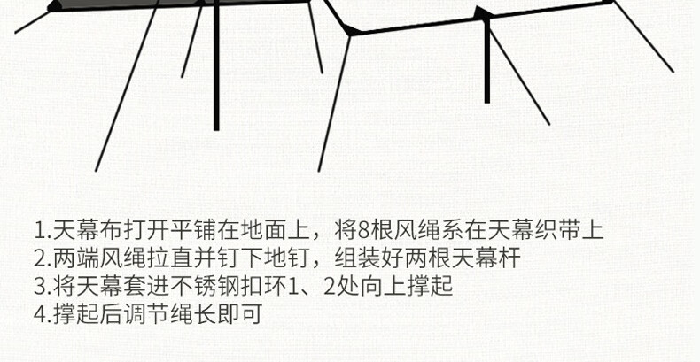 3 固定地钉时需确保深入土壤足够深度,并配合拉紧风绳,防止被风吹动或倾倒