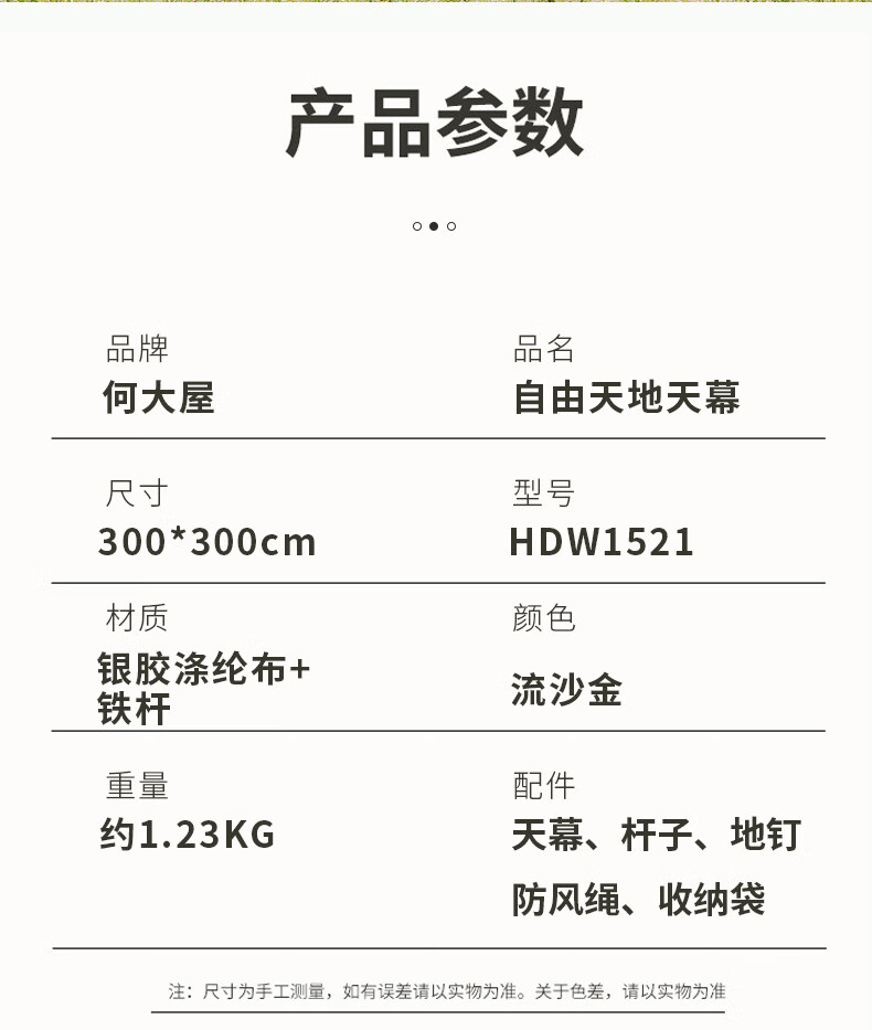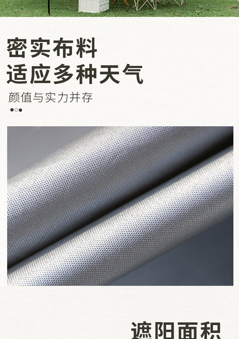 1 采用210D牛津布银胶涂层面料,具备优异的遮阳防晒性能,有效阻隔紫外线,提供清凉舒适的户外空间