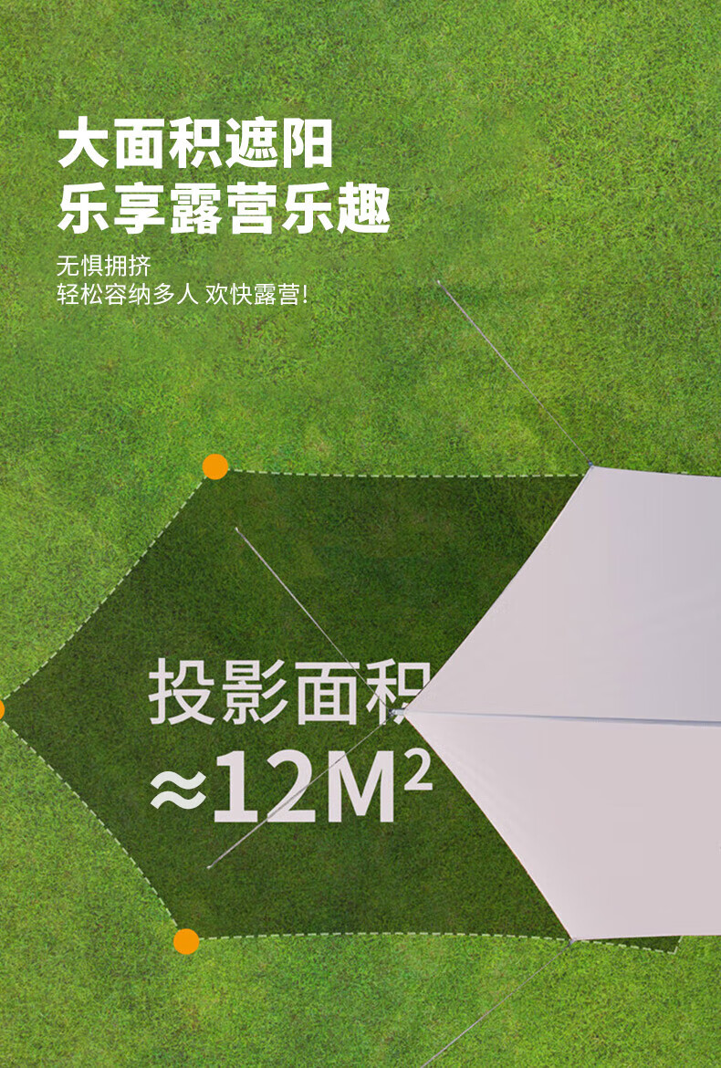 6 投影面积可达约12平方米,宽敞空间可容纳4-10人同时使用,满足家庭聚会、朋友野餐等需求