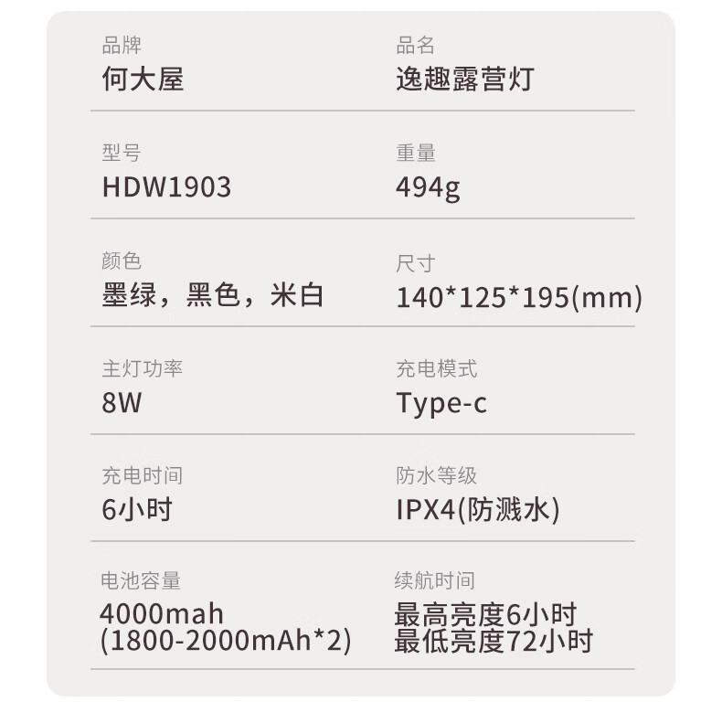 主灯功率8W,配备4000mAh大容量电池(1800-2000mAh*2),续航时间长,最高亮度下可连续使用6小时,最低亮度可达72小时