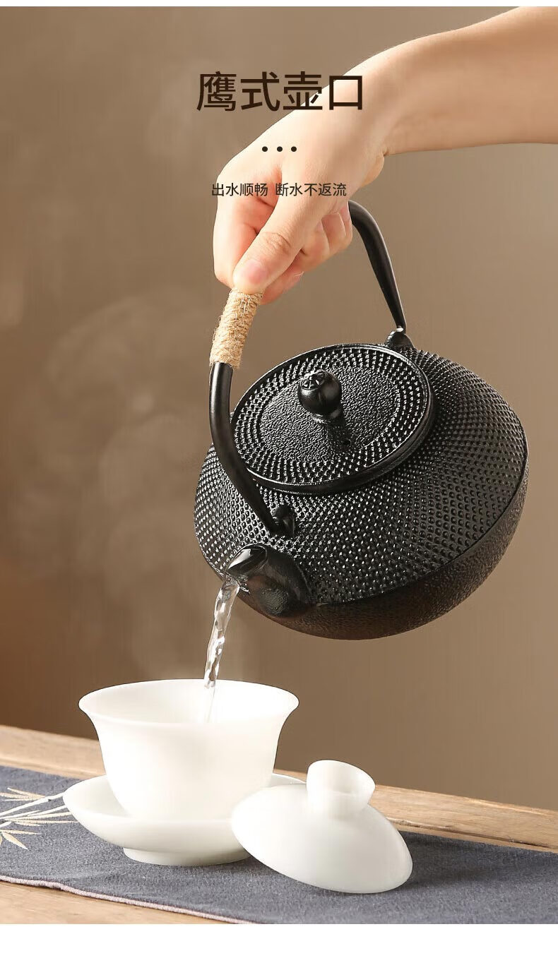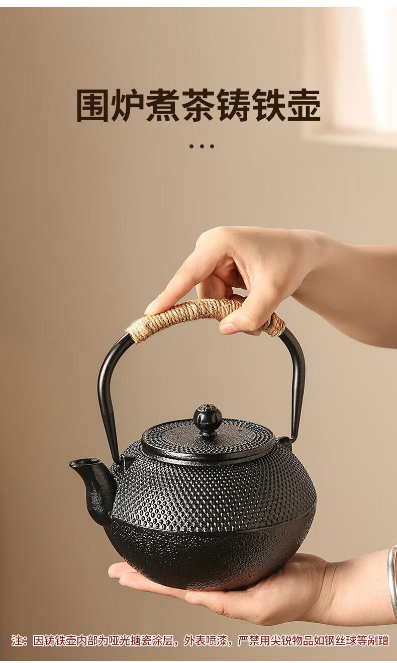 使用铸铁壶煮水时,新壶需先用矿泉水连续煮水3次,每次约15分钟,以去除杂质和异味