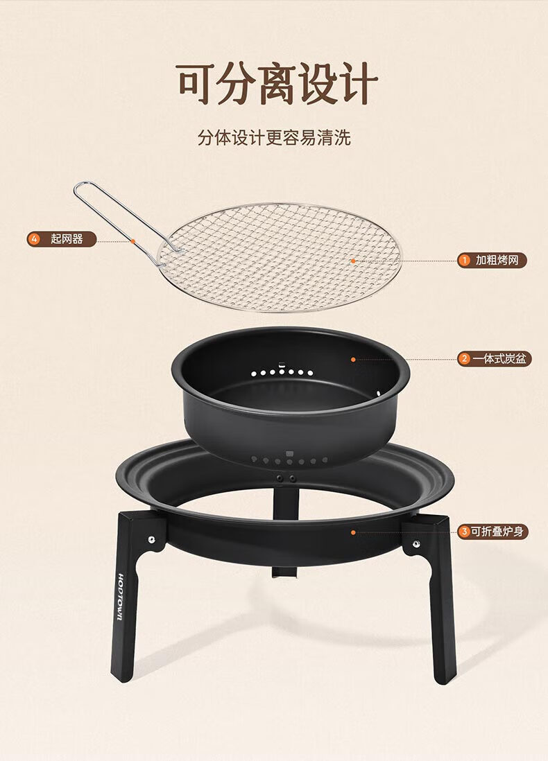 严禁在无防护措施的情况下直接接触高温部件,尤其是烤网和炭槽区域