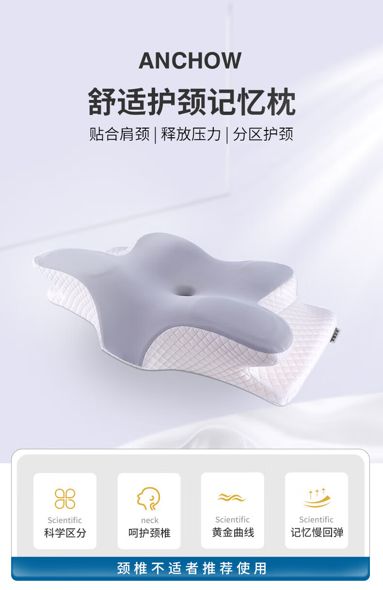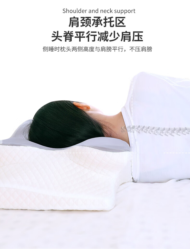 3 人体工学曲线设计,贴合颈椎自然弧度,有助于改善睡眠质量,减轻肩颈疲劳