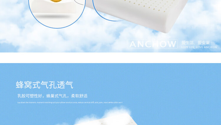 1 采用天然乳胶材质,具有高弹性与快速回弹性能,能够为头部和颈部提供强有力的支撑,有效缓解颈椎压力