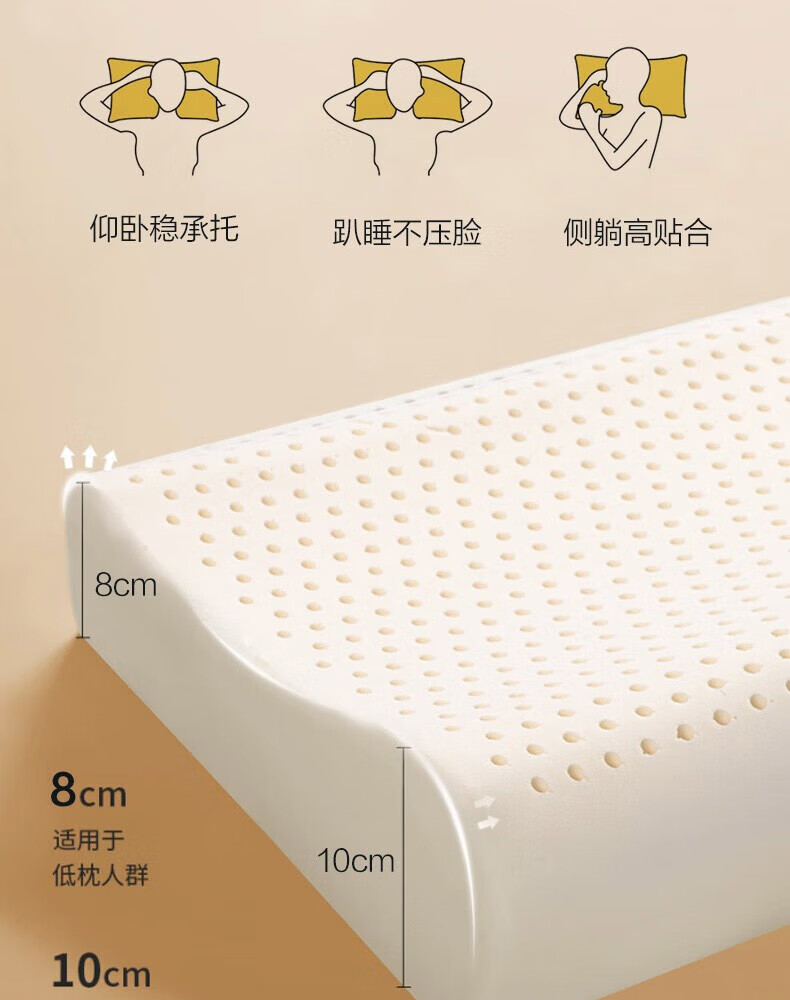 6 双高度设计(8cm/10cm),满足不同身高及睡姿需求,适应仰卧、侧卧、俯卧等多种睡眠姿势