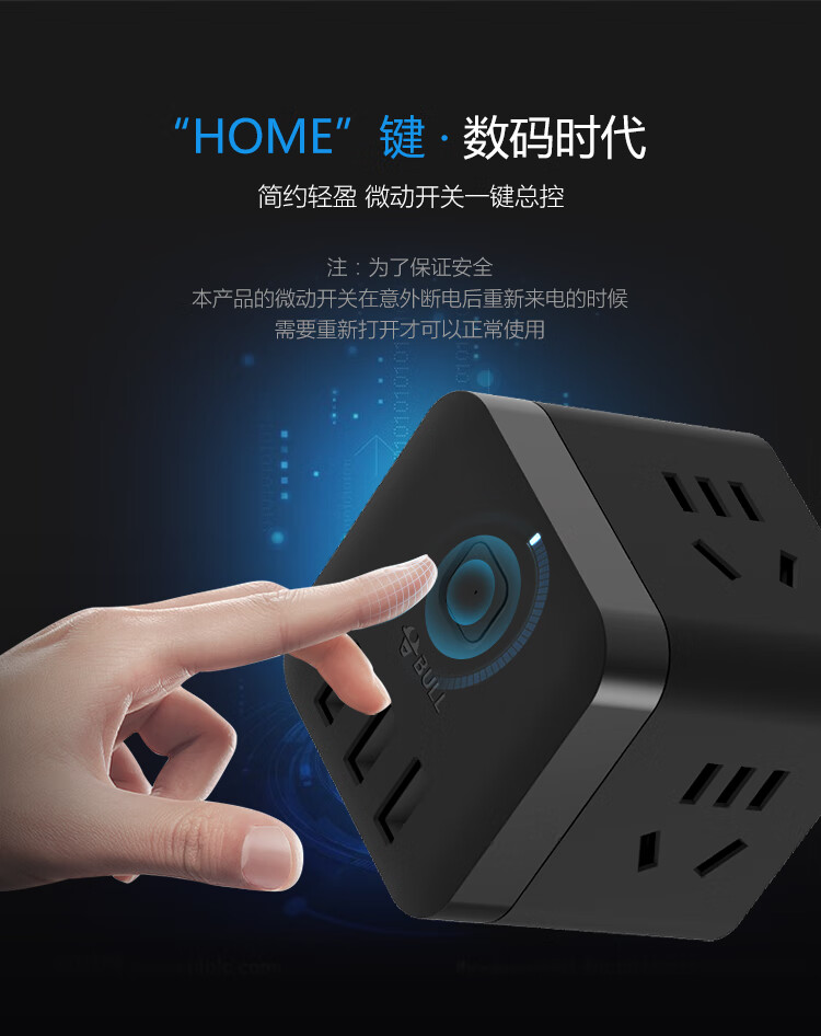 内置微动开关‘HOME’键,一键控制全部电源通断,操作便捷且节能省电