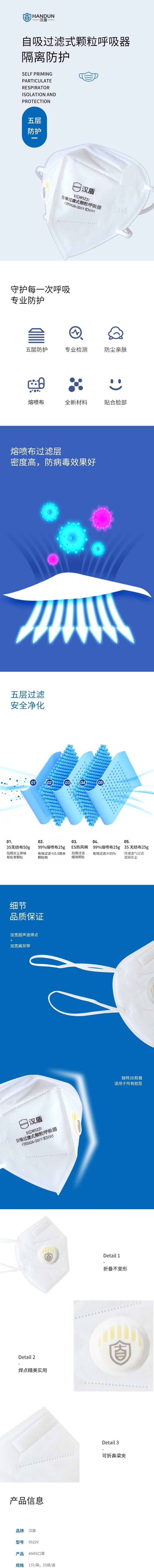 汉盾 HD9522V KN95折叠式口罩(头带式,带呼吸阀,独立装,25只/盒,200只/箱)