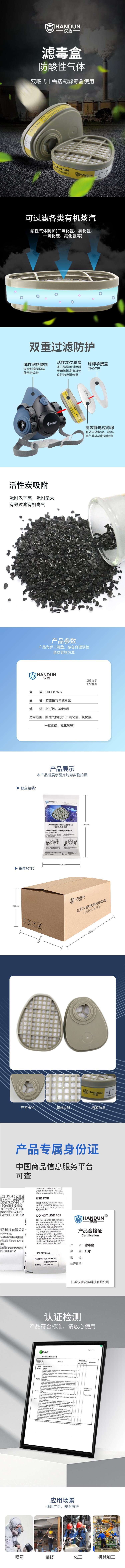 汉盾 HD-FB7602 防酸性气体滤毒盒具有以下特点: