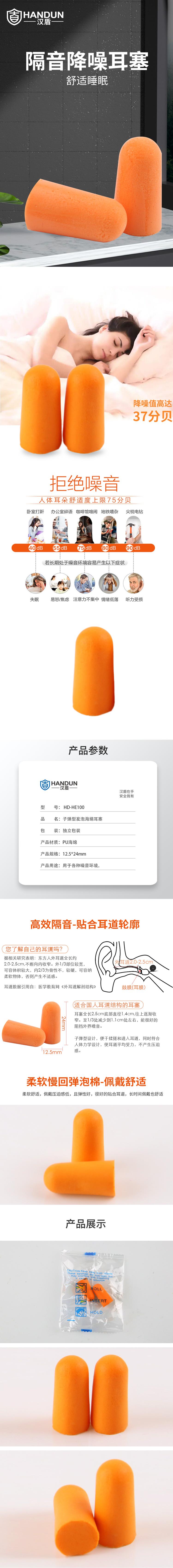 汉盾 HD-HE100 子弹型耳塞(独立装,100副/盒,1000副/箱)