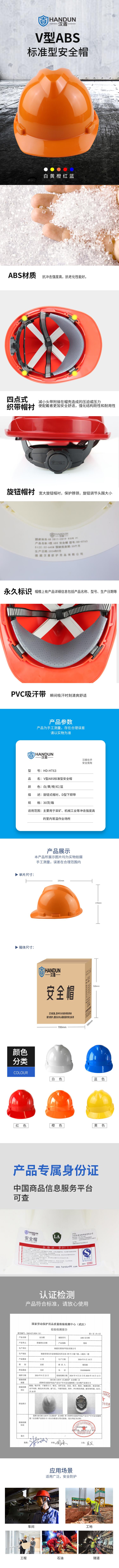 汉盾 HD-HT63 V型ABS标准型安全帽采用优质ABS全新料制成,具有极高的抗冲击性能和耐老化特性,确保在各种恶劣环境下提供可靠的安全防护。