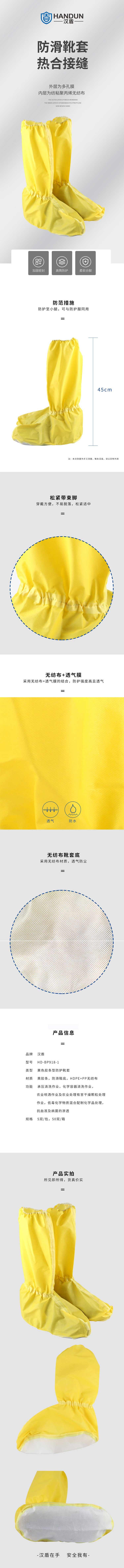 汉盾 HD-BP918-1 黄色胶条型防化靴套(黄胶条,防滑鞋底,HDPE+PP无纺布,5双/包,50双/箱)