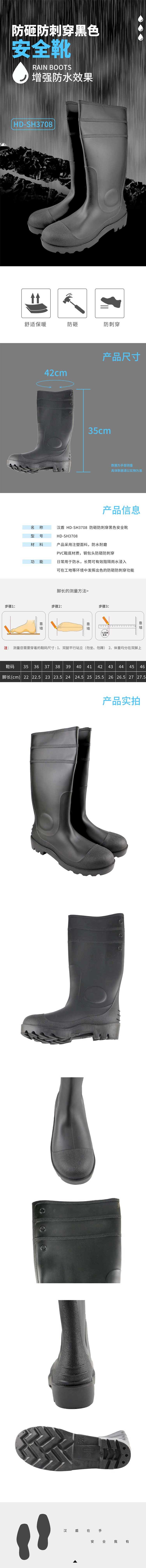 汉盾 HD-SH3708 黑色耐磨防滑防砸防刺穿高筒雨靴具有以下特点: