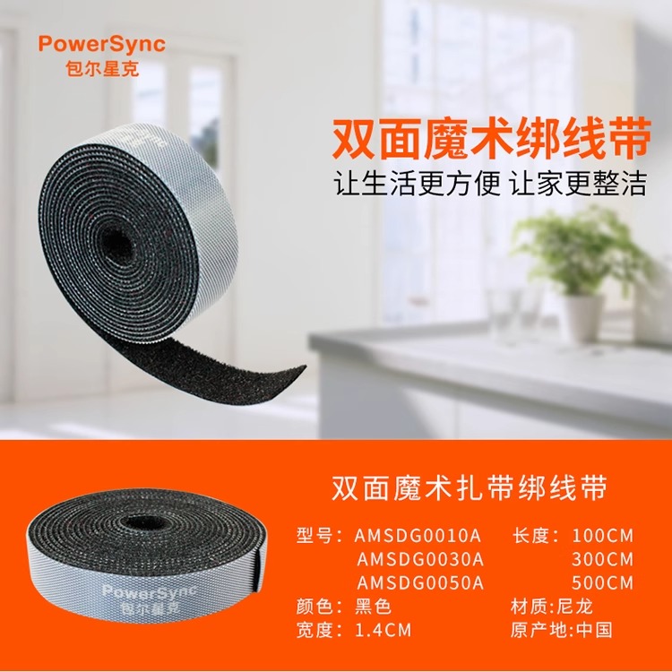 powersync(包尔星克) AMSDG0030A 双面魔鬼氈理线带 W1.5×L300cm 黑色