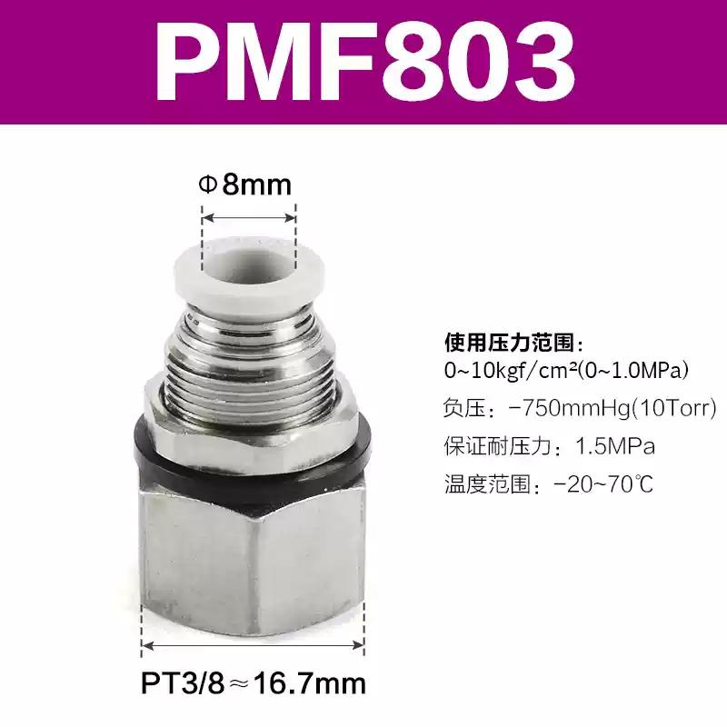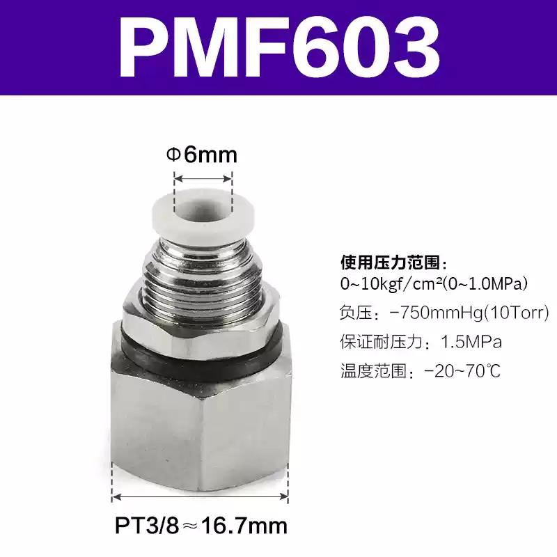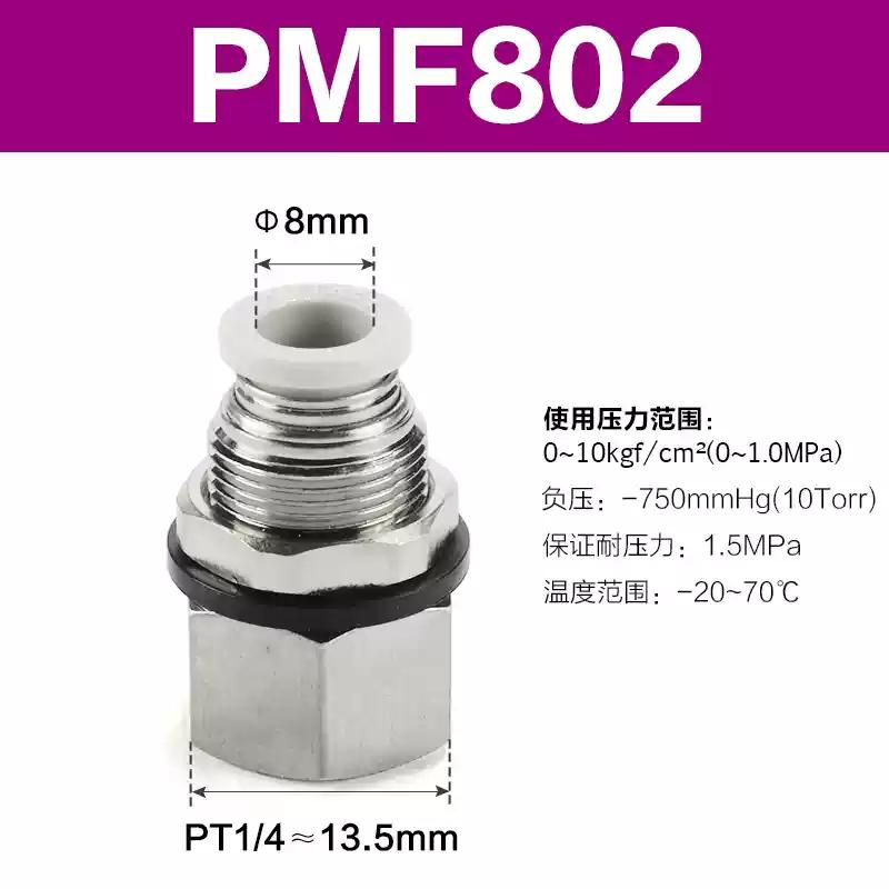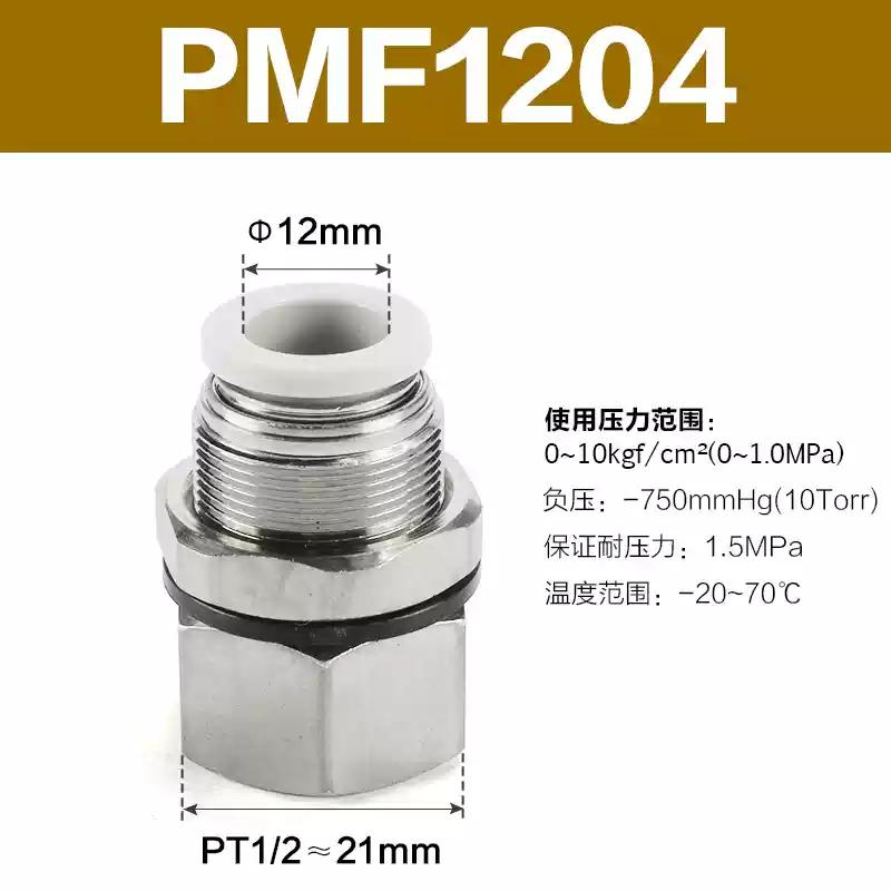 安装前请确认软管外径与接头插管尺寸匹配(PMF1203对应Φ12mm软管),避免因尺寸不符导致密封不良。