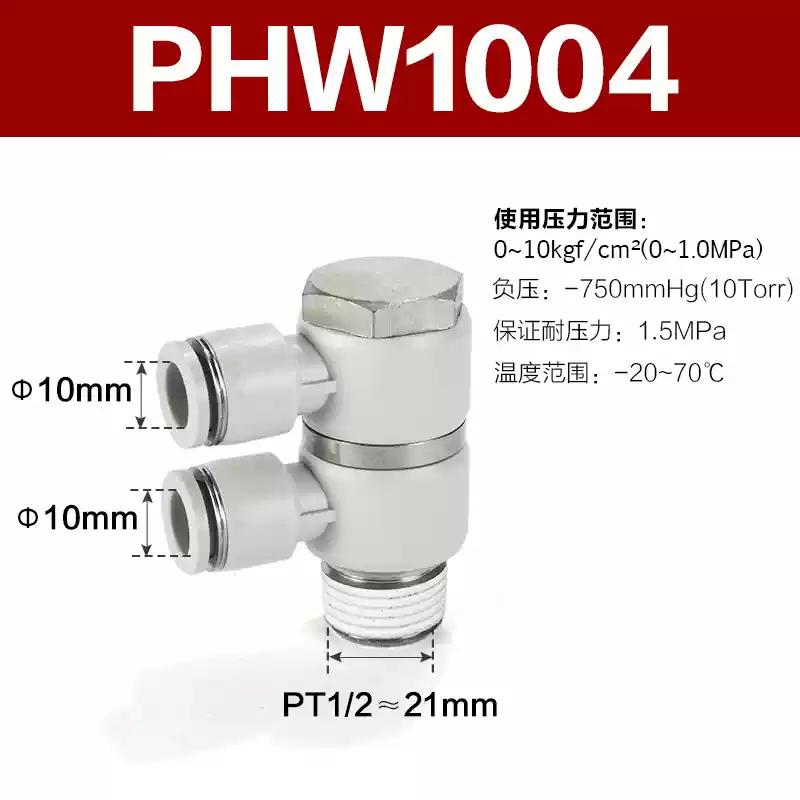 嘉辰F型螺纹可旋三通气动接头PHW1003采用优质黄铜镀镍材质,具有优异的抗腐蚀性和抗氧化性能,有效防止污染和锈蚀,延长使用寿命。
