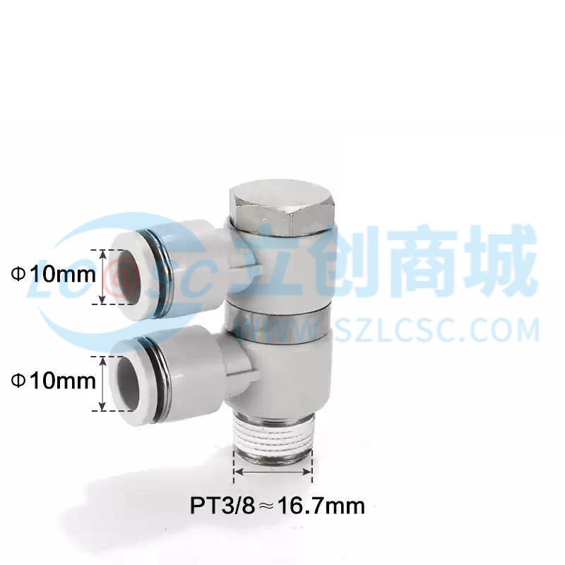 两侧为快速插拔气管接口,直径Φ10mm,插入气管后自动锁紧,操作便捷,防止意外脱扣,提升系统安全性与维护效率。