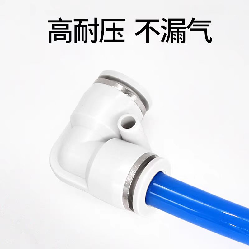 嘉辰L型二通气动接头PV6采用高强度树脂材质制造,具备优异的耐压性能和密封性,确保在高压环境下不漏气、不脱管。
