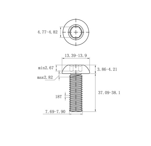该内六角圆柱头螺钉采用304不锈钢材质,具有优异的耐腐蚀性、抗氧化性和抗疲劳性能,适用于高要求的工业环境。其公称直径为5/16英寸(约7.94mm),螺距为18牙每英寸(粗牙),符合ANSI/ASME B18.3BT标准,确保尺寸精度与互换性。螺丝长度为1-1/2英寸(约38.1mm),螺纹覆盖范围为全牙设计,提供充分的连接强度。头部为平圆头结构,配合内六角驱动方式,安装时可实现低扭矩高紧固力,避免滑牙或损伤表面。头部直径约为13.39-13.9mm,高度在3.86-4.21mm之间,对边距离为4.77-4.82mm,适合使用标准内六角扳手操作。表面处理为本色,保留了不锈钢原有的金属光泽和自然防腐能力,无需额外涂层即可满足多数非极端环境需求。整体结构紧凑,机械性能稳定,适用于精密装配与长期服役场景。