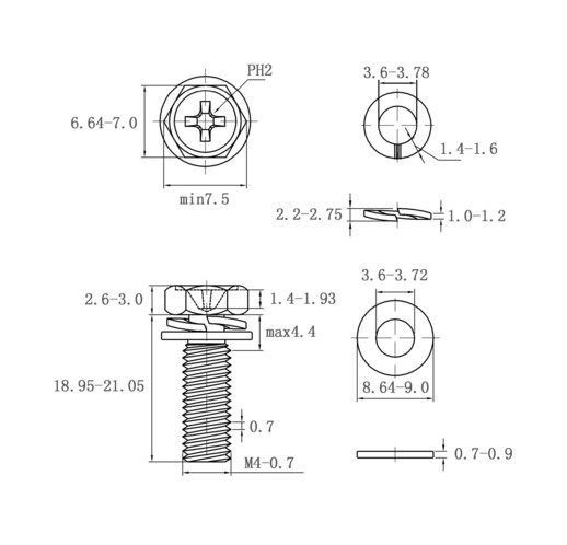 法思特十字外六角头凹穴机螺钉平弹垫组合不锈钢 M4*20