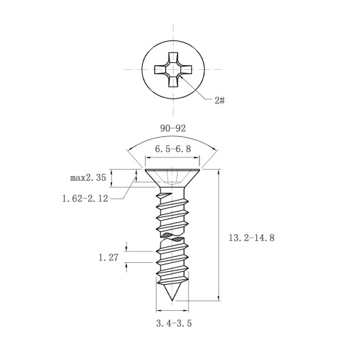 结构设计合理:十字沉头结构,安装后表面平整无凸起,不影响安装面的美观与后续操作;自攻螺纹设计(螺纹直径3.4 - 3.5mm、牙距1.27mm),可直接攻入木材、薄板等材料,无需额外攻丝,提升安装效率