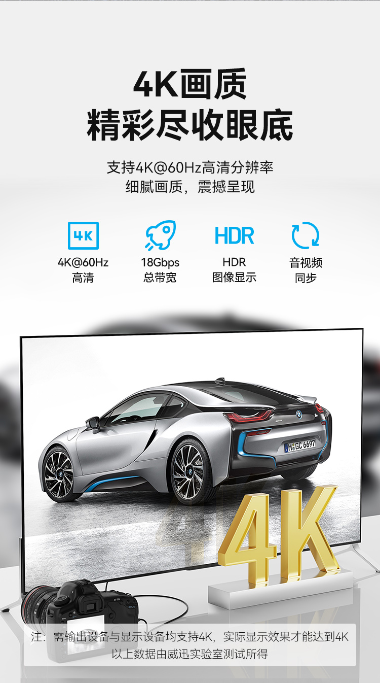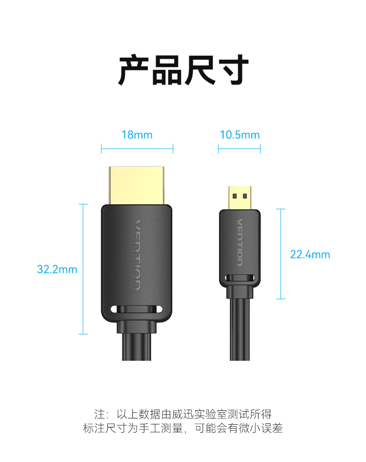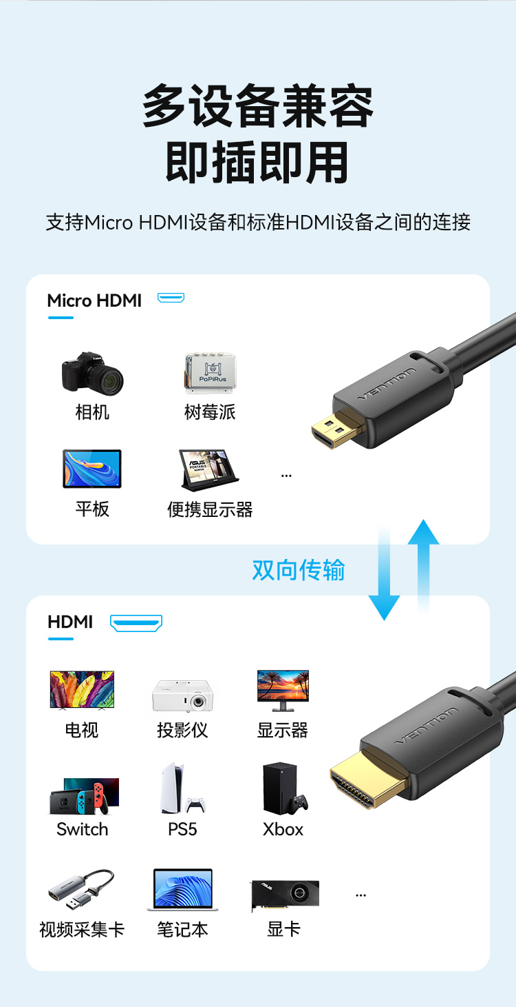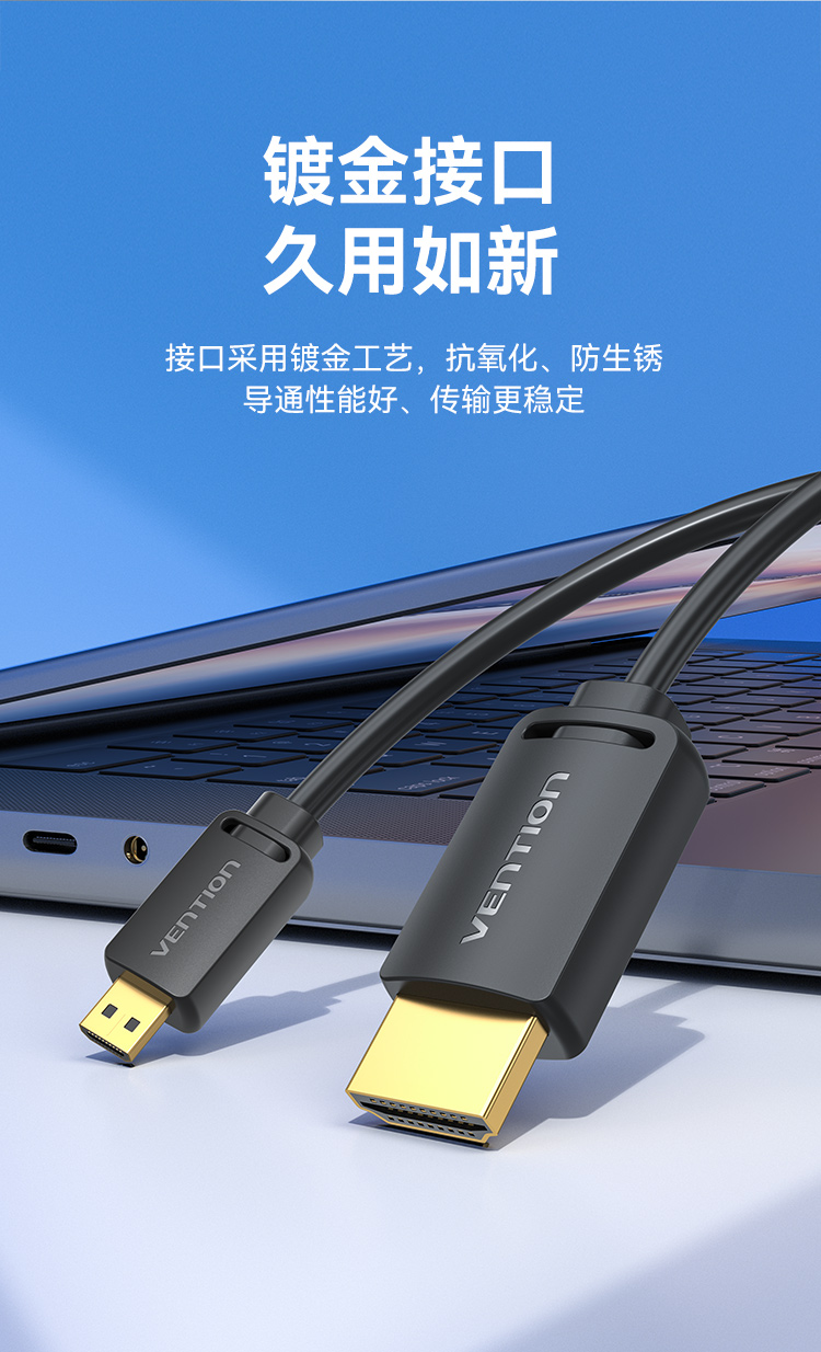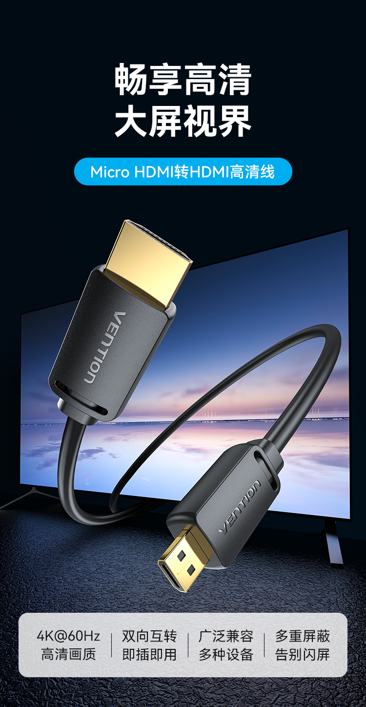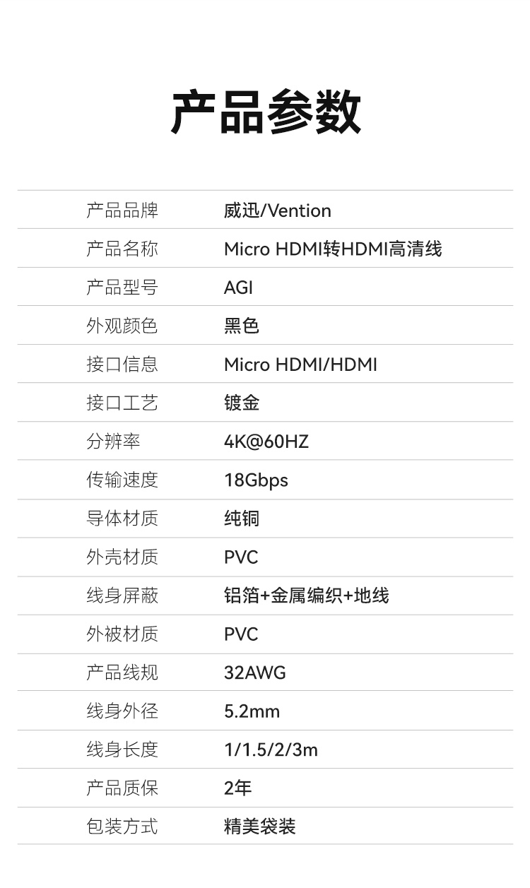 威迅2.0版Micro HDMI转HDMI转接线 4K60Hz转换线 平板相机笔记本电脑连电视投影仪显示器 2米AGIBH