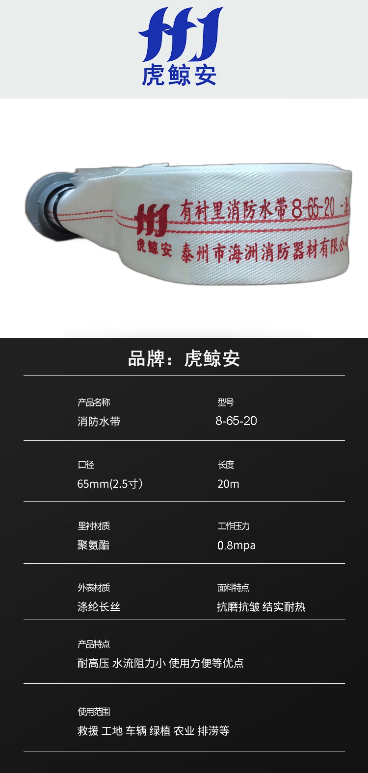 虎鲸安 8-65-20 消防水带 聚氨酯水带(含接口)单位:套