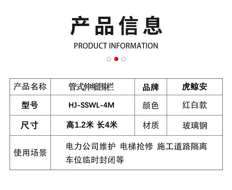 虎鲸安 HJ-SSWL-4M 管式伸缩围栏 高1.2米 长4米 单位:件