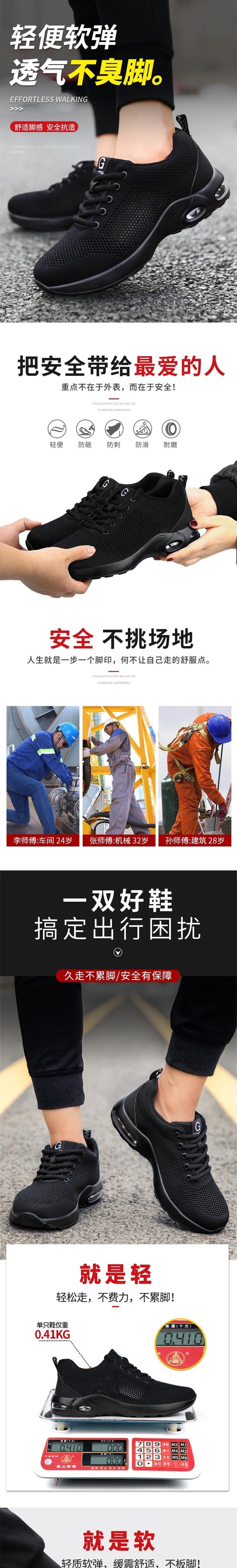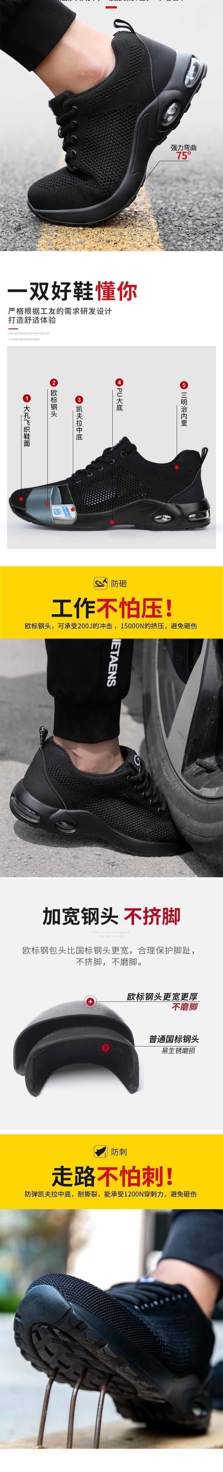 整双鞋具备防砸、防刺、防滑、耐磨、透气五大核心防护功能,兼顾安全性与舒适性。