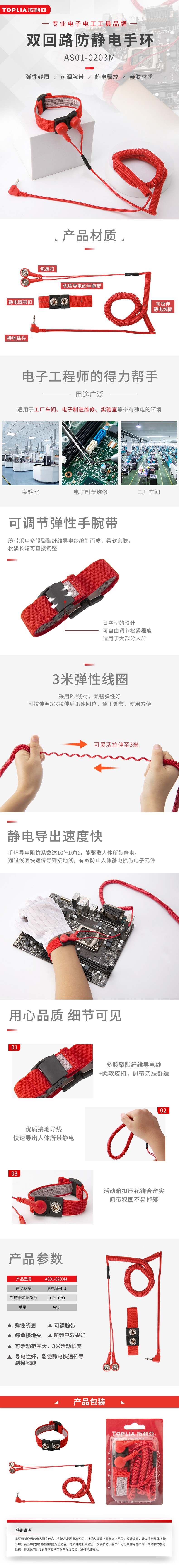 TOPLIA(拓利亚)双回路静电手环长度:3m