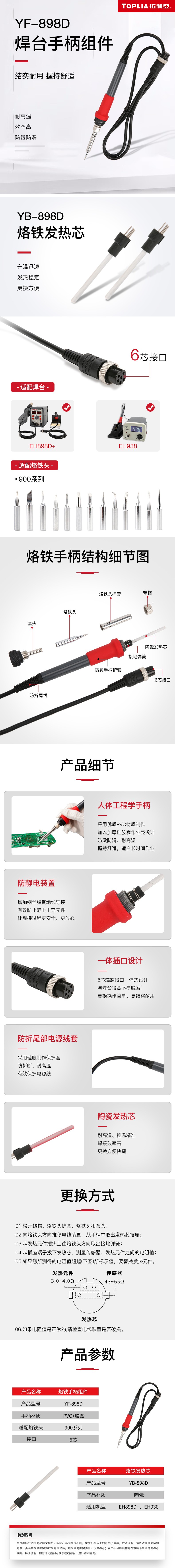 本产品仅适用于指定型号焊台(如EH898D+、EH938),请勿随意混用其他品牌或型号部件,以免造成设备故障。