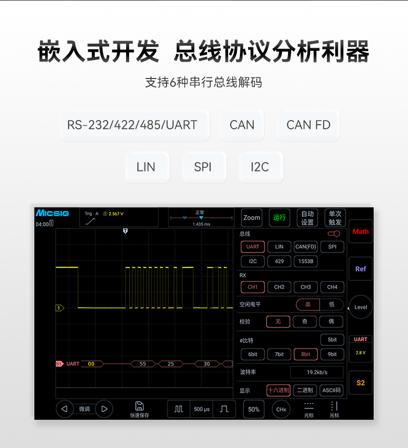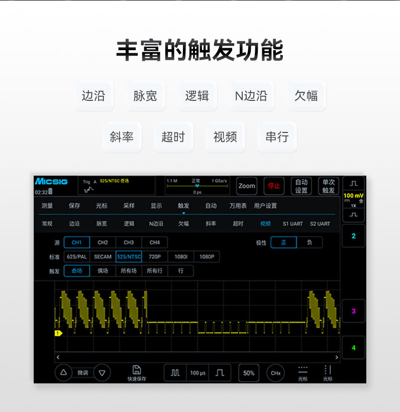 存储深度较大时,若需长时间录制波形,请注意剩余内存空间,及时保存重要数据。