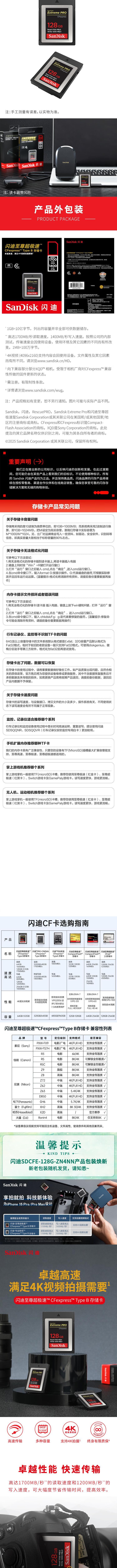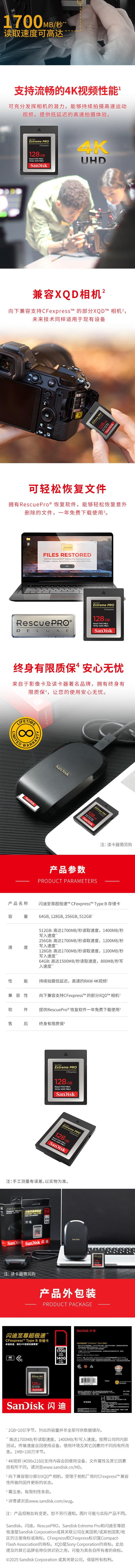SANDISK(闪迪) CFexpress卡 存储卡 128GB 读速1700MB/s 写速1200MB/s 新固件