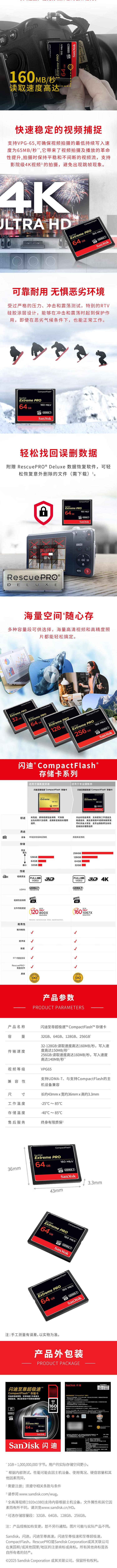 产品尺寸为43mm×36mm×3.3mm,小巧便携,兼容所有支持CompactFlash格式的主机设备,包括佳能、尼康等主流品牌的专业单反相机。