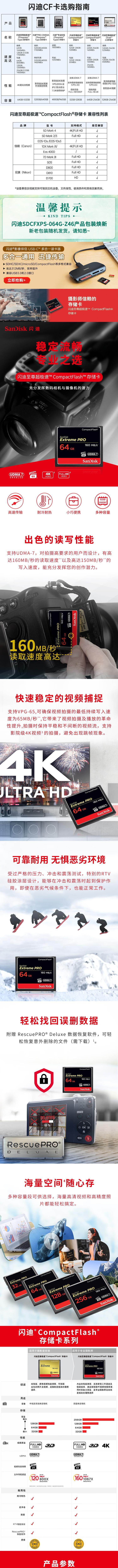 SANDISK(闪迪) CF 存储卡 64GB VPG65 UDMA 7 读速160MB/s 写速150MB/s
