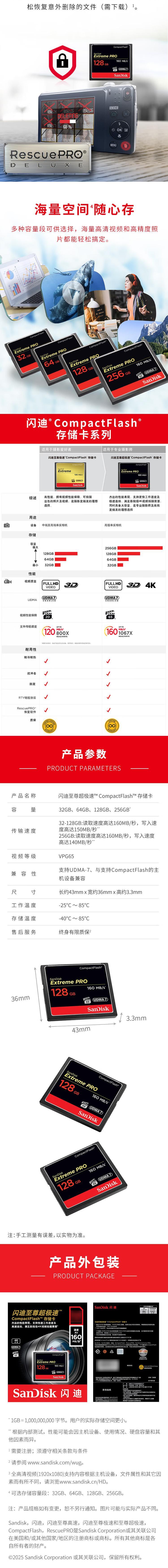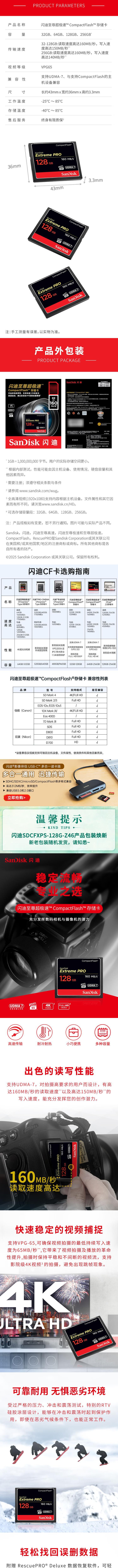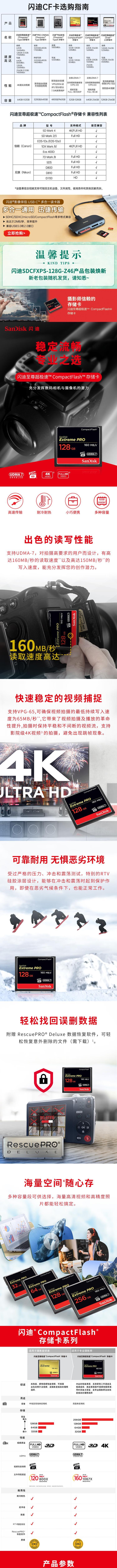 SANDISK(闪迪) CF 存储卡 128GB VPG65 UDMA 7 读速160MB/s 写速150MB/s